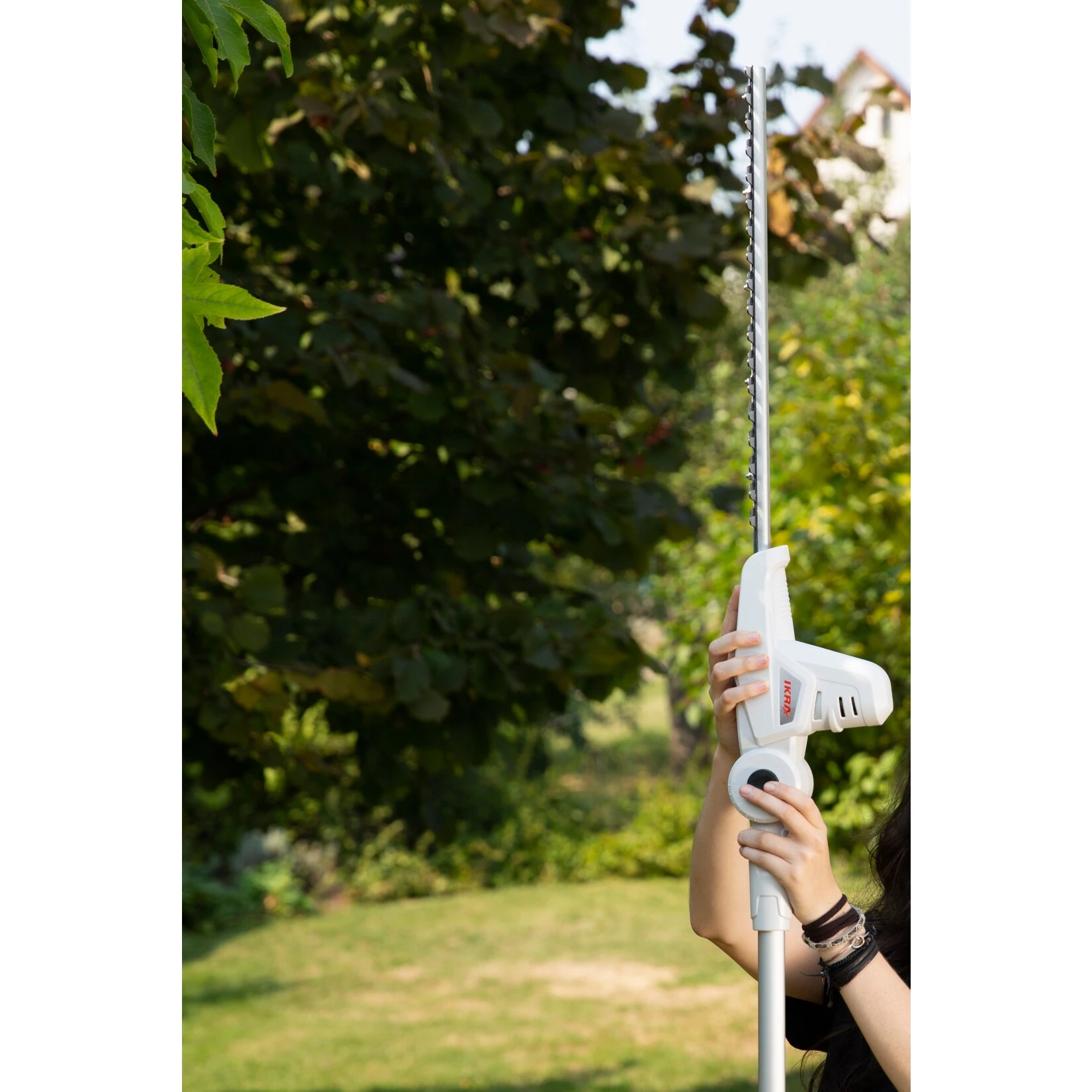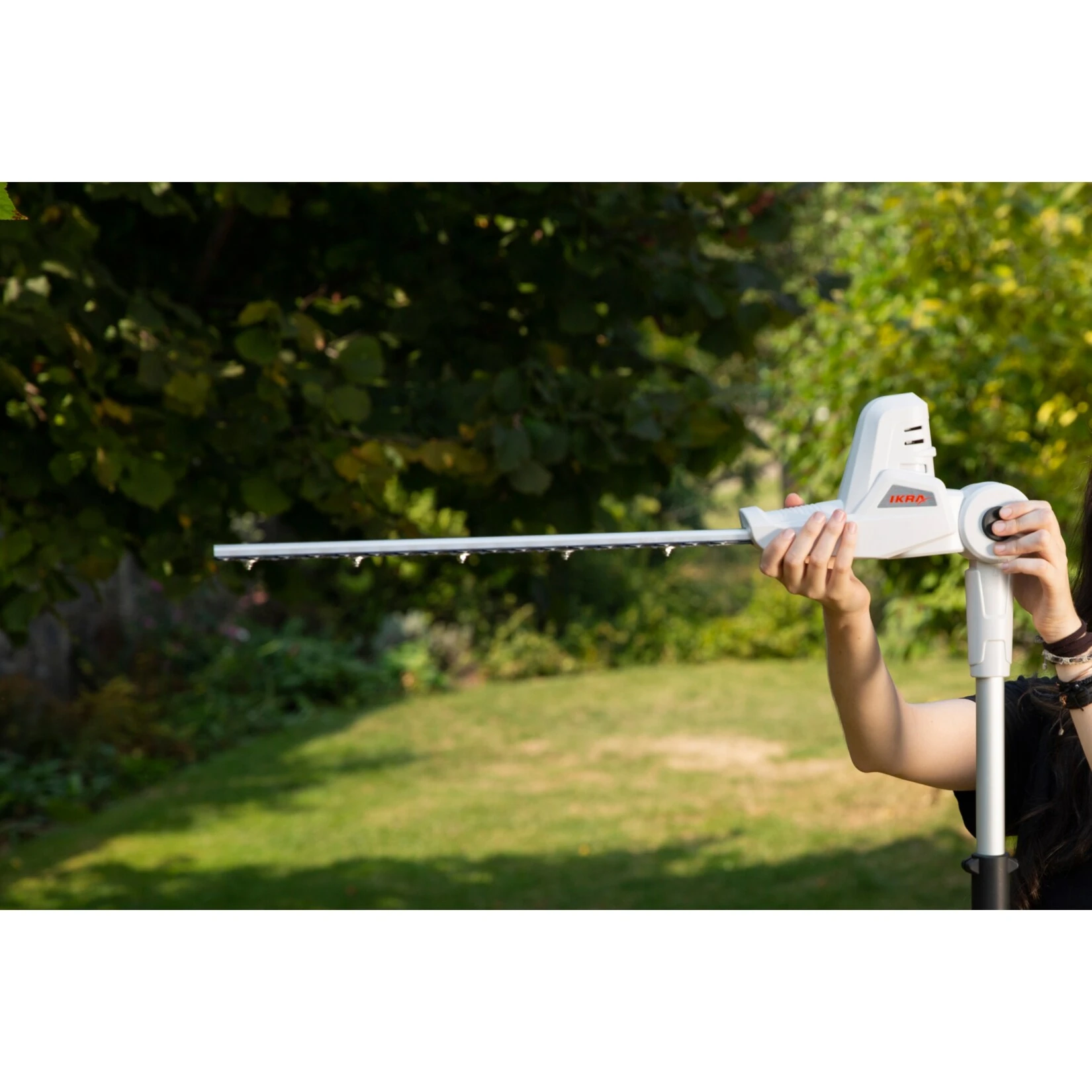 IKRA Akku Teleskop Heckenschneider ICPH 2040 (20V / 2,0 Ah) zum Schneiden von hohen Hecken, großen Büschen und Sträuchern ohne Leiter und Gerüst –