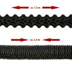 Der flexible Wasserschlauch dehnt sich unter Wasserdruck um das Dreifache von ca. 2,5 m bis ca. 7,5 m aus und zieht sich beim Entleeren wieder in die ursrprüngliche Größe zusammen.