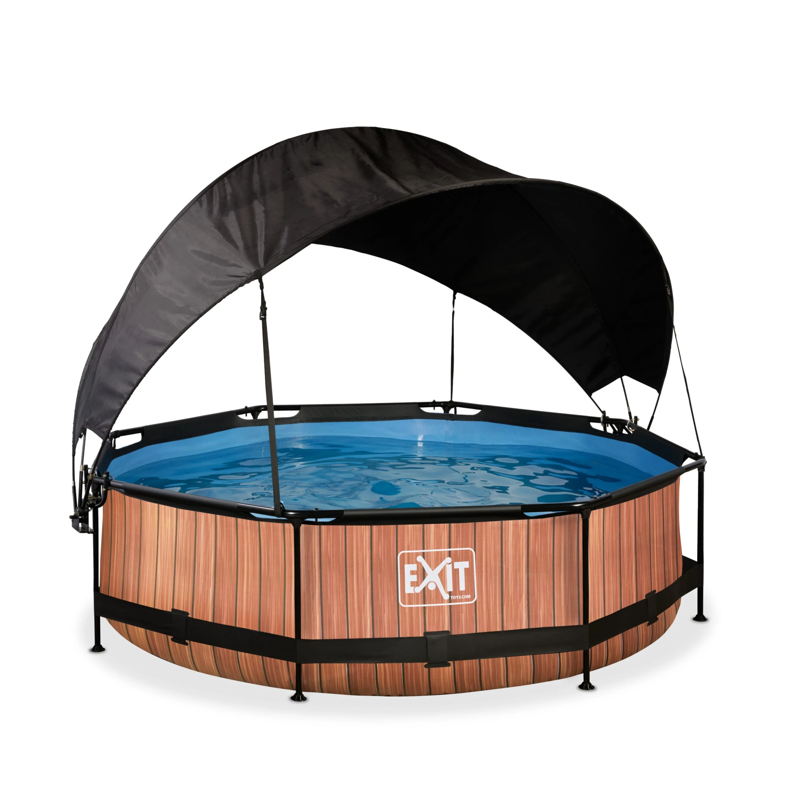 Der EXIT Wood Pool ø300x76cm ist ein runder Rahmenpool mit Holzlook.
