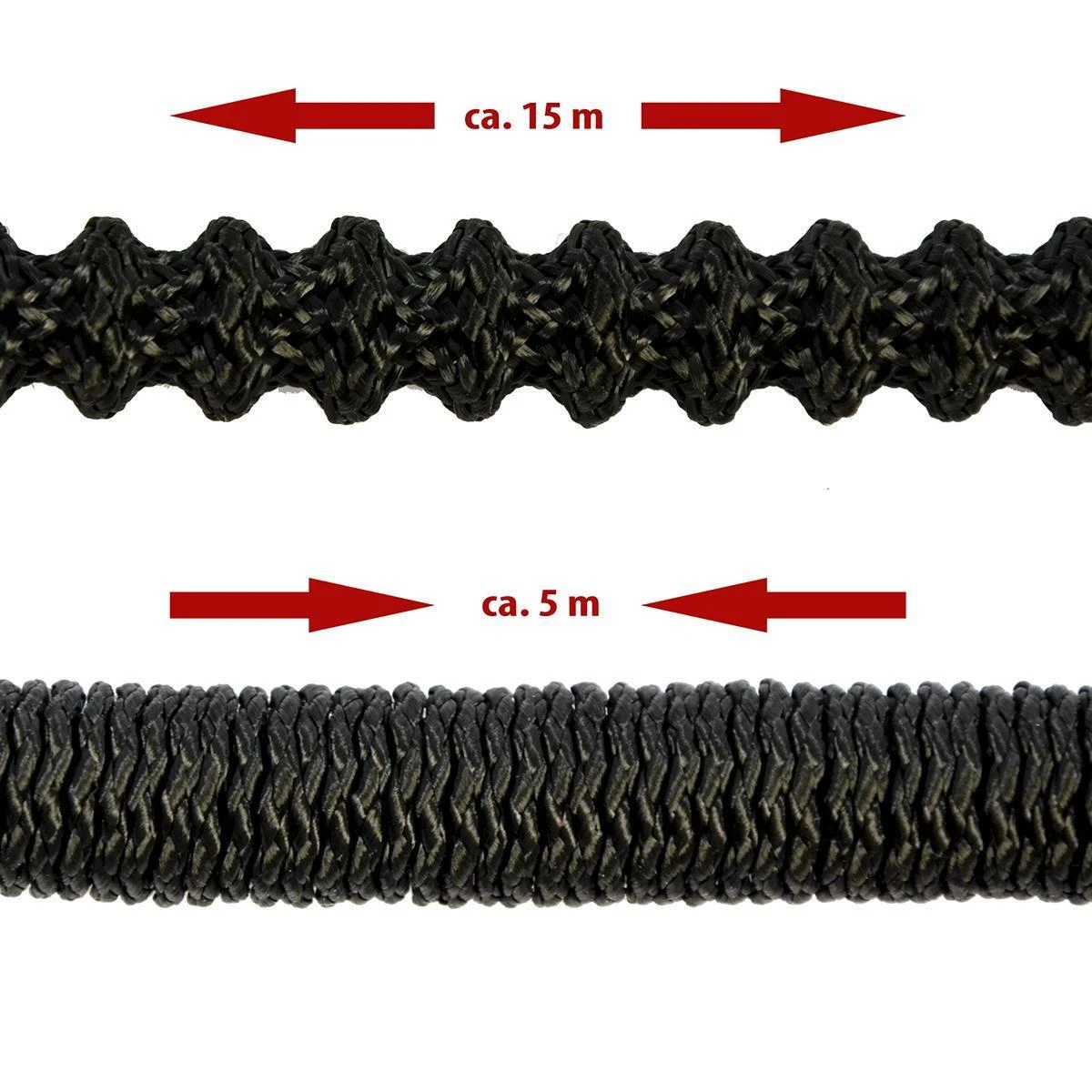 – Der flexible Wasserschlauch dehnt sich unter Wasserdruck um das dreifache von ca. 5m – 15m aus und zieht sich beim entleeren wieder in die Urschsrpüngliche Größe zusammen..