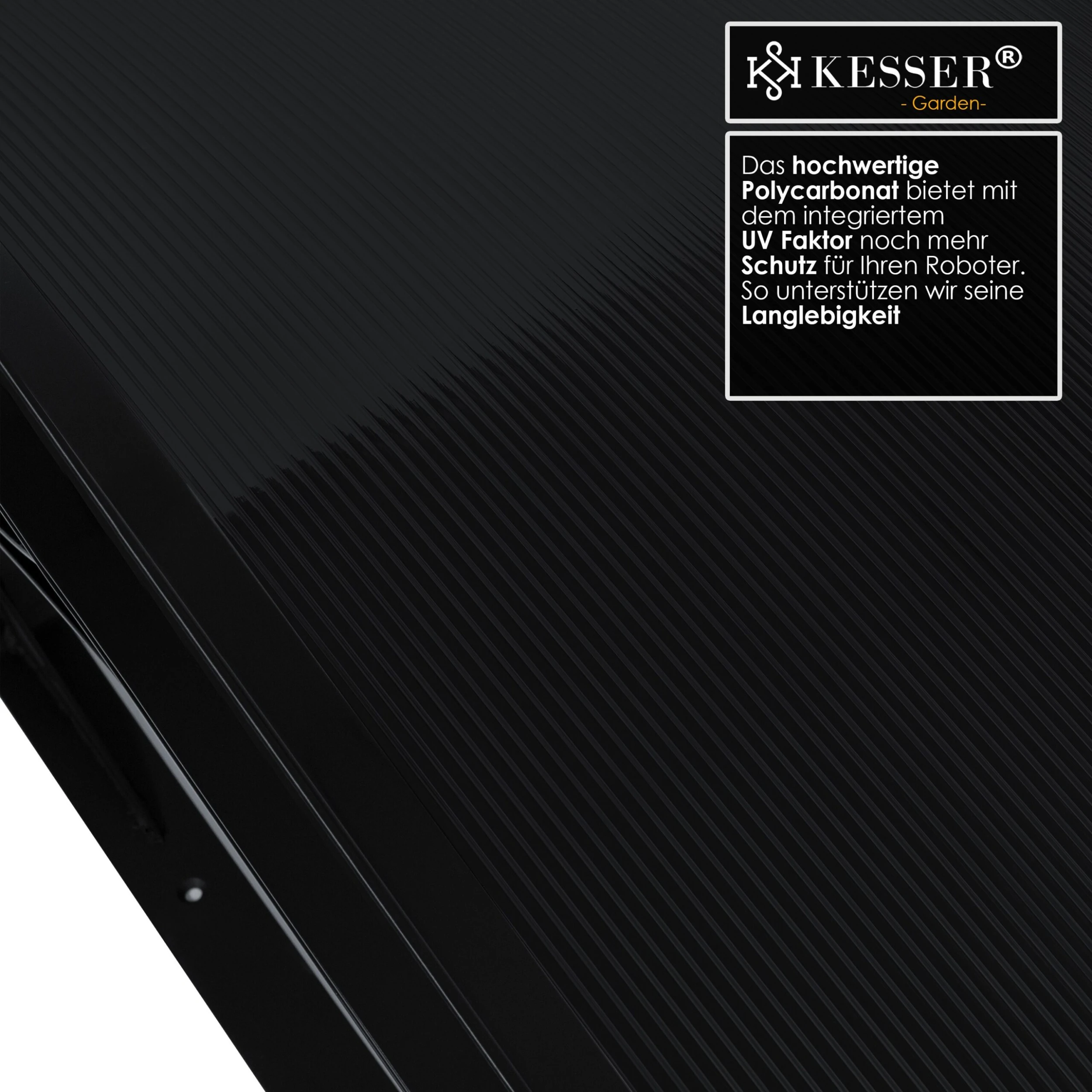 Haben Sie sich gerade einen Mähroboter angeschafft und möchten ihn möglichst lange verwenden? Unsere Mähroboter Garage der Marke KESSER bietet hohen Schutz vor langen Regenperioden und verlängert damit die Lebensdauer Ihres Rasenmähers. Ein zusätzlicher Vorteil unserer Mähroboter–Überdachung ist, dass Sie die Ladestation darunter platzieren können, zu der Ihr Mähroboter automatisch nach dem Mähvorgang zurückkehrt.