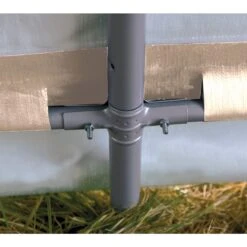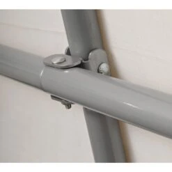 Ein 3,5cm massives und Premium beschichtetes Stahlgestell (5 Rippen) verhindert Rostbildung und garantiert eine hohe Lebensdauer. Patentierte Stabilisatoren (ShelterLogic® 3X Steel Stabilizers) gewährleisten eine 3x höhere Belastbarkeit der Konstruktion. Im Eingangsbereich ist eine Tür (BxH 240x210cm) mit 2 Reißverschlüssen und Befestigungs-Gummis eingearbeitet.