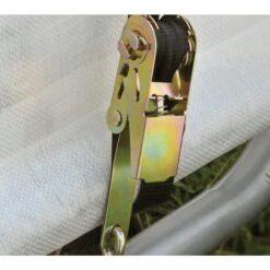 Die verstärkte Rückwand sorgt für zusätzliche Stabilität. 8 Stk. mitgelieferte Zurrgurte sichern die Festigkeit der Plane am Gestell bei Wind und Wetter. Im Lieferumfang sind 4 Stk. Sturmanker (38cm) zur festen Verankerung im Boden enthalten. Ein Fundament ist nicht erforderlich. In nur einer Box verpackt.