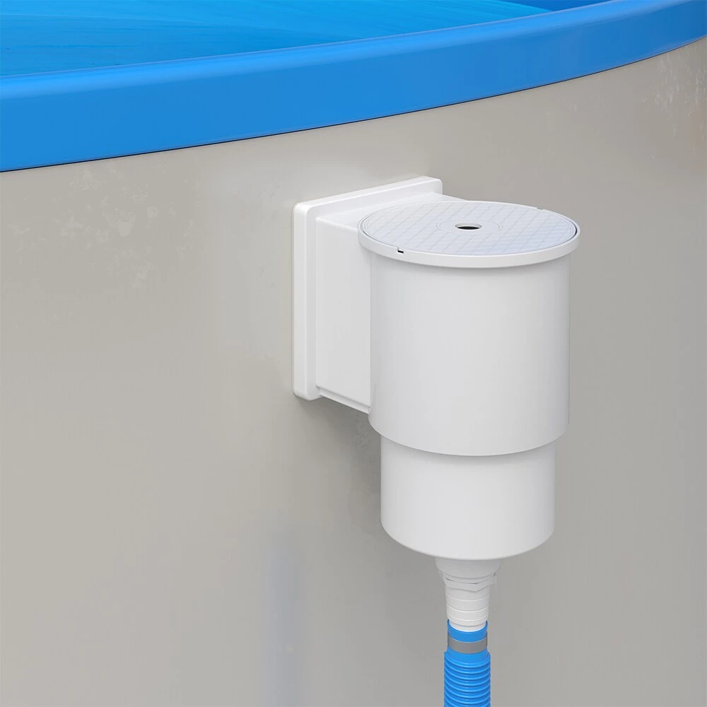 • Die Vorrichtungen des Skimmers lassen Anschlüsse für Schläuche oder auch Bodensauger mit einem Durchmesser von 32 und 38 mm zu.
