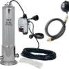 Set aus Pumpe, Filterkorb und Zubehör zur Kellerentwässerung und für Notfälle. Beinhaltet Kombitauchpumpe mit ausziehbarem Pumpenfuß „Maxima 350 IPX DUO“.